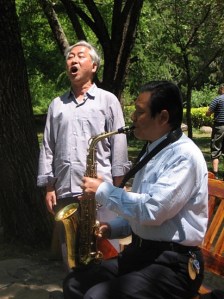 Quand je regarde le Parc Lafontaine, je me dis qu’il y manque une véranda où des personnes âgées se rencontreraient pour chanter et faire de la musique de leur époque. Bien sûr, les plus jeunes n’apprécieraient pas mais nous, les un peu plus vieux, saurions qu’il y aura toujours une place pour les airs de la nôtre. Les parcs de la Chine ont tous un tel espace, où jeune et moins jeunes croisent leur souvenirs musicaux. Opéra traditionnel en solo ou chants révolutionnaires en groupe, souvent au son d’un erhu (二胡) et d’une flute chinoise, ramènent « artistes » et spectateurs dans les bras d’une époque révolue.