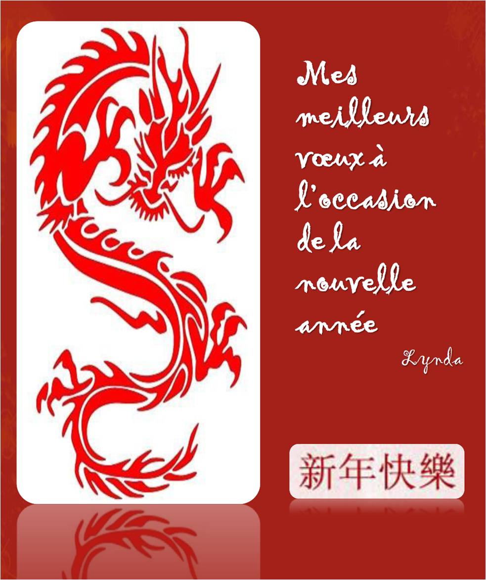 La voici arrivée, pleine de promesses … mais aussi d’anticipations. Que sera l’année du Dragon d’eau (du 23 janvier 2012 au 10 février 2013) ? Je me contenterai quant à moi à vous la souhaiter aussi dynamique et durable que l’est le dragon !