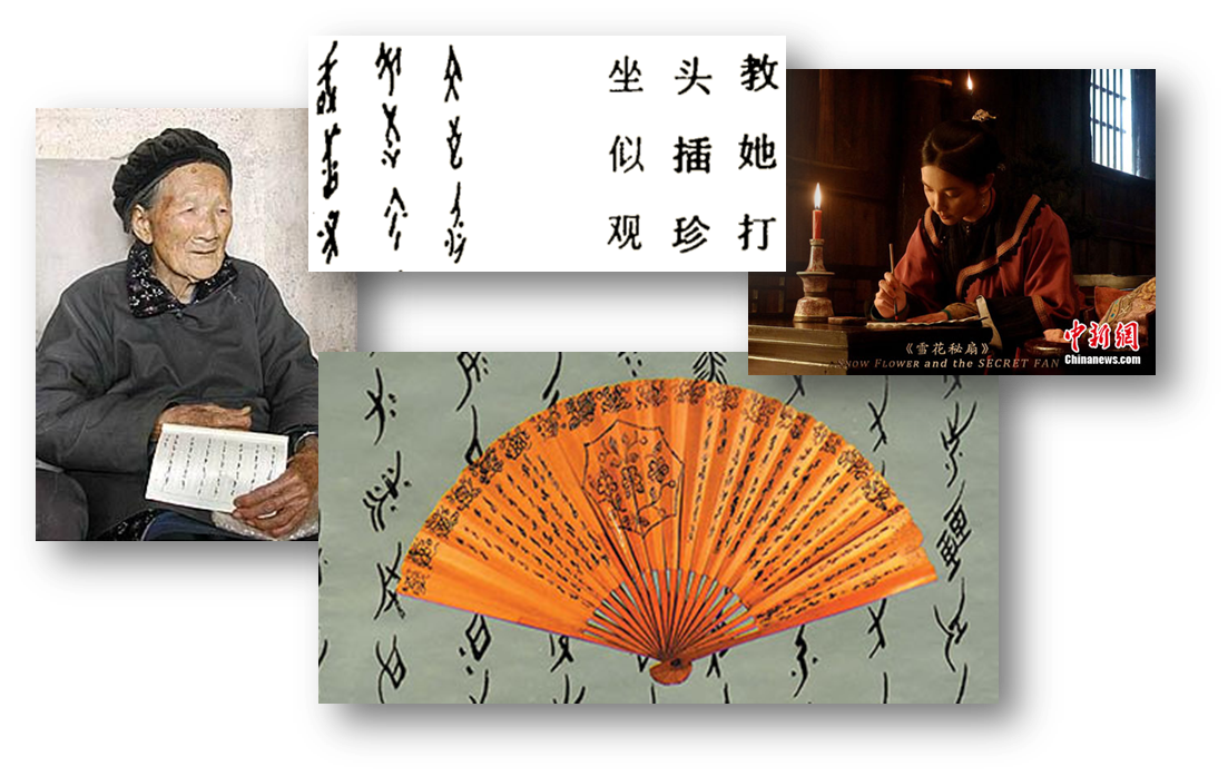 Le nushu (女书) est une forme d’écriture que les femmes Yao du Hunan utilisaient pour se transmettre entre elles des messages à l’insu des hommes. Apposés sur des éventails, des bouts de tissus ou dans des boîtes, ils semblent fort différents des caractères chinois habituels. Pourtant, les 700 caractères de ce système d’écriture s’inspirent des caractères chinois traditionnels. Ils se lisent de haut en bas et de gauche à droite. Le décès en 2004 de Yang Huanyi dernière femme à en maîtriser les secrets, marque la fin de cette écriture millénaire par ailleurs étudiée et documentée par de nombreux chercheurs.