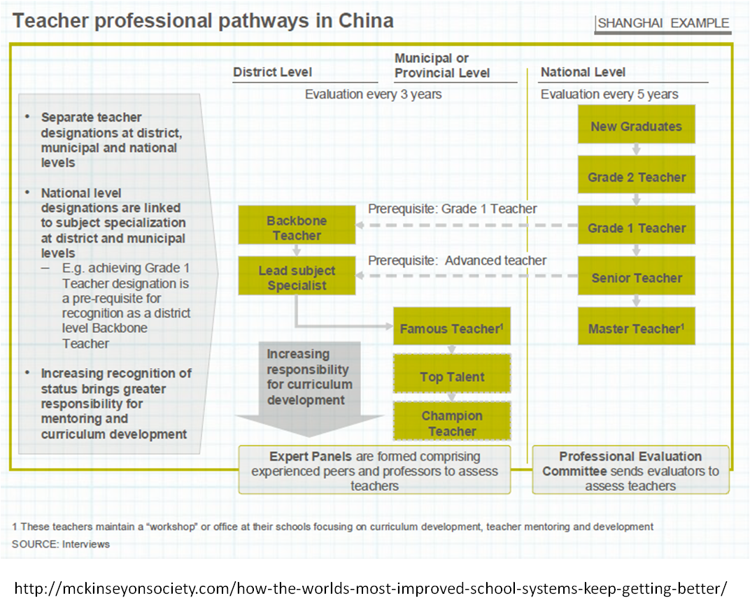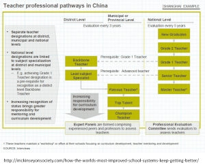 - Pour en savoir plus sur le cheminement professionnel d’un enseignant en Chine, voir l’étude de McKinsey intitulée How the world’s most improved school systems keep getting better (2011)