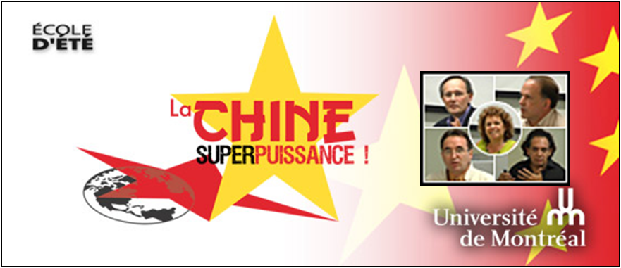 • La Chine – Superpuissance. L’une des écoles d’été du CERIUM, du 9 au 14 juillet 2012. Au programme : 1) la Chine des idées reçues, 2) L’économie et le filet social en Chine, 3) Les droits en Chine : progrès ou mirage ?, 4) L’enjeu énergétique et environnemental, 5) La politique étrangère chinoise