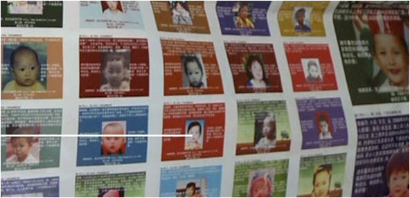 - De 8 à 20 milles enfants, à 75 % des garçons, disparaissent chaque année en Chine. Une famille sans héritier, dans un contexte où la fille quitte pour la famille de son époux au mariage, se retrouve démunie lorsqu’il devient impossible de travailler. Les enjeux démographiques de la politique de l’enfant unique et le déficit de filles, dans une société sans filet social, imposent aux familles volées de leur héritier une quête pour la retrouver (Arte Reportage, 19 novembre 2011)