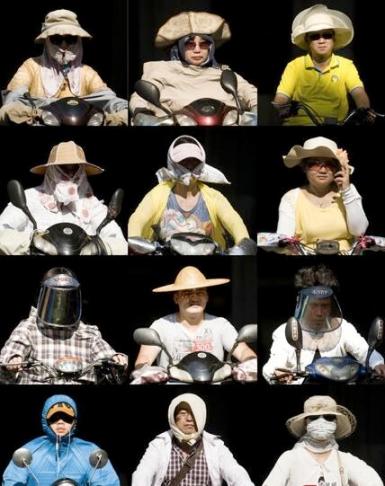 Je rentre de Chine et on me parle de la chaleur torride du Québec la semaine dernière. Cela me rappelle que, quant à moi, je trouve le climat québécois, avec ses quelques canicules annuelles, bien confortable. Ci-dessous, une photo fort intéressante sur les moyens auxquels les Chinois ont recours pour se protéger de la chaleur et des rayons de soleil (quand ils traversent la pollution et les nuages).